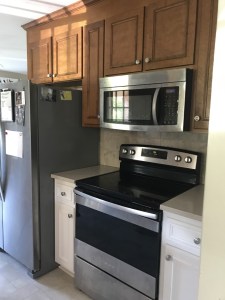 After much research, and a practice run on a couple cabinets, I have decided to take the easy way on this. I plan on (a) not sanding, but only cleaning well and (b) not removing the doors. A perfect solution for the impatience in me. Hopefully, it won’t turn out like the typical Pinterest-ideal-gone-wrong. I’ll let you know.